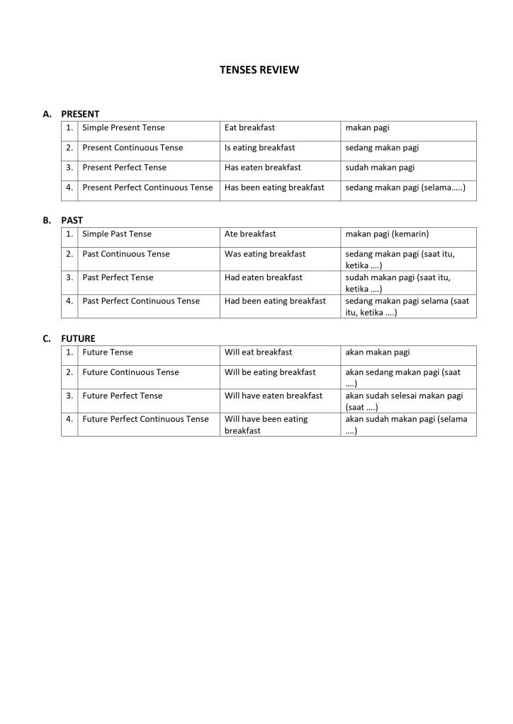TENSES REVIEW Ditulis olehFar ClassJanuari 24, 2022Diposkan padaUncategorized Bagikan ini: Bagikan ke X(Membuka di jendela yang baru) X Bagikan pada Facebook(Membuka di jendela yang baru) Facebook Bagikan ke WhatsApp(Membuka di jendela yang baru) WhatsApp Cetak(Membuka di jendela yang baru) Cetak Kirim email tautan ke teman(Membuka di jendela yang baru) Surat elektronik Suka Memuat... Terkait